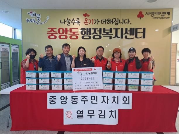 이 김치는 중앙동 관내 저소득층 가구에 전달될 예정이다.