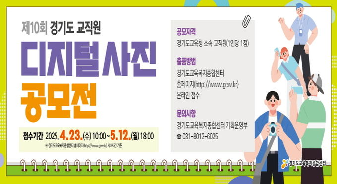 [경기탑뉴스=박봉석 기자] 경기도교육복지종합센터가 ‘시선여행: 동심으로 가는 길’을 주제로 ‘제10회 교직원 디지털 사진 공모전’을 개최한다.