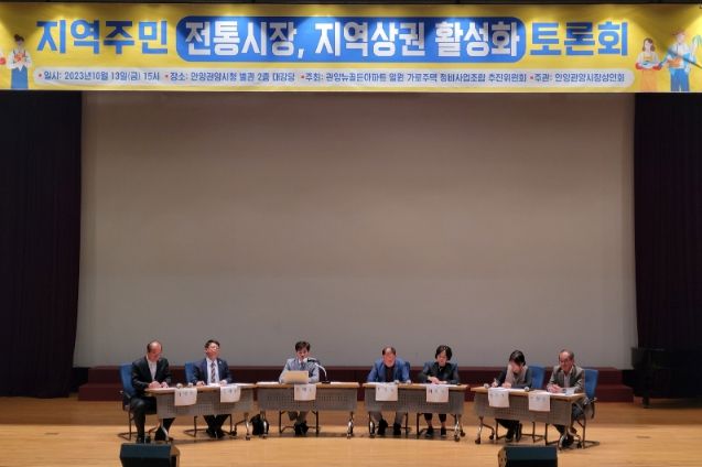 이날 토론회는 안양시 윤해동 시의원(더불어민주당 안양바)이 좌장으로 참석하고 김재훈 경기도의원(국민의힘, 안양4), 박동성(안양관상시장상인회 회장), 이상준(관양시장 매니저), 최복순(관양 뉴골든아파트 일원 조합 추진위원장), 송은미(관양 뉴골든아파트 일원 조합 추진위원회 총무이사), 기병준(관양고 주변 도시개발지구 보상대책위원장)이 토론자로 참석했다.