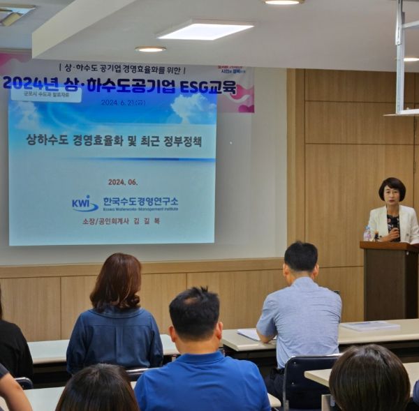 홍유진 수도녹지사업소장은 “교육을 통해 직원들의 업무 능력을 향상시키고 ESG경영은 더 이상 선택이 아닌 필수로 우리 군포시 상하수도 행정에도 적극 도입 지속가능한 성장을 지향하는 계기가 되길 바라며 격년제로 실시되고 있는 외부평가에 적극대응 시민들에게 보다 나은 행정서비스를 제공하는 계기가 되길 바란다”고 말했다.