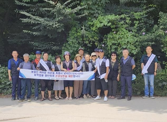 이날 회원들은 농업인 및 지역주민을 대상으로 여름철 폭염대비 건강수칙 및 폭염특보 시 행동요령, 온열질환 응급조치 안내 등 폭염예방 홍보 캠페인을 진행하였다.