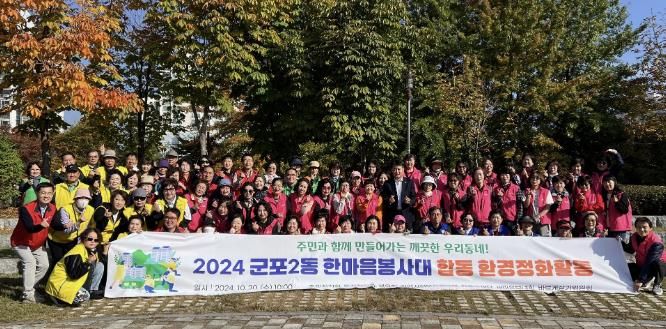 7개 직능단체(주민자치회, 통장협의회, 체육회, 지역사회보장협의체, 자율방재단, 새마을부녀회, 바르게살기위원회)로 구성된 군포2동 한마음봉사대는 지역사회를 위해 다양한 봉사활동을 전개하고 있으며, 이날은 군포2동 전 지역을 청소하기 위해 약 130여 명이 모여 대규모 환경정화활동을 진행했다.