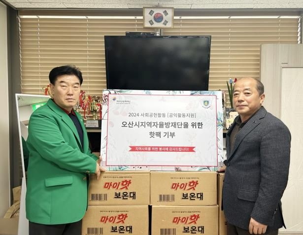 [경기탑뉴스=박봉석 기자] 오산문화재단은 13일 ‘오산시지역자율방재단’에 핫팩 1300장 기부 전달식을 가졌다고 밝혔다.