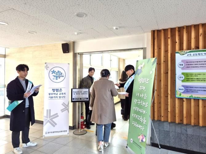 이날 광주초등학교, 광주중학교, 초월고등학교를 방문한 광주하남교육지원청은 학부모 뿐만 아니라 행동강령책임관과도 면담을 진행하여 현장에서 업무 추진 시 ▲부정 청탁에 따른 업무처리 금지 ▲위법·부당한 행위로 사익 추구 금지 ▲금품 등 요구 금지 등 외부 청렴체감도의 구체적 사항들을 안내하고 학교 청렴 정책 추진과제 이행을 당부했다.