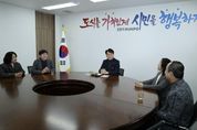 [경기탑뉴스=박봉석 기자] 하은호 군포시장은 지난 16일 한국토지주택공사 이한준 사장과 면담을 갖고 시 주요 현안사항에 대해 폭 넓게 논의하며 신속한 해결을 요청했다. 이날 하은호 시장은 대야미 공공주택지구에 최초 입주가 시작되는 2027년 12월까지 입주민들의 피해가 없도록 ▸대야미지구∼송정지구간 도로개설 ▸대야미역 하부도로 확장 ▸대야미지구 배수지 신설 및 하수처리장 증설 등 계획중인 기반시설에 대한 신속한 사업 진행을 요구했다. 또한, 3기 신도시 의왕군포안산 공공주택지구 광역교통개선대책과 관련해 ▸국도47호선 왕복 입체화 및 구간 연장 ▸공업지역 활성화 시범사업지구 종단도로의 전폭 개설 등 LH의 적극적인 교통처리대책을 요청했다. 하은호 시장은 “금번 논의된 주요 현안들이 반드시 반영돼 시민들의 불편이 없어야 한다” 면서 시에서도 인·허가 절차 등 LH 신속한 사업 진행을 위한 행정적 지원을 아끼지 않겠다“고 말했다. 이에 대해 LH 이한준 사장은 “군포시 주요 현안 사항을 충분히 검토해서 결과에 대해 시와 긴밀히 협의하고 적극 반영해 나가겠다” 라고 답했다.