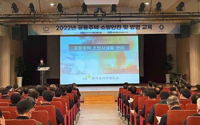 소방안전교육을 맡은 서주원 LH 경기지역본부 분양주택관리1부 차장은 공동주택 소방시설물 관리를 주제로 소방 관련 법규 소개, 소방시설물의 종류 및 관리 요령, 화재 예방대책 등을 교육했다.