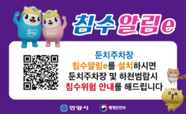 [경기탑뉴스=박봉석 기자] 안양시가 둔치주차장에 주차한 차주에게 제공하는 ‘침수알림e’ 서비스를 모든 시민을 대상으로 확대 운영한다고 6일 밝혔다.