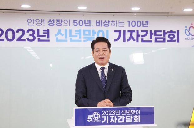 [경기탑뉴스=박봉석 기자] 최대호 안양시장은 11일 신년 기자간담회에서 100년 넘게 번영할 ‘미래도시 안양’을 만들기 위한 사업들을 중단없이 추진하겠다고 포부를 밝혔다.