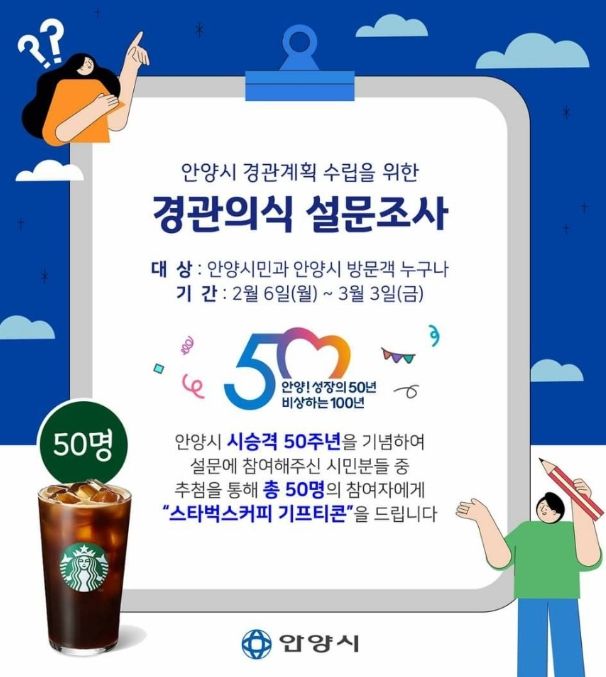 이번 설문조사는 시민이 바라는 도시이미지, 경관 만족도, 대표 경관 자원 및 관리 등에 대한 의견 수렴으로 조사 결과는 2016년 수립한 안양시 경관계획을 재정비해 수립하는 ‘2040 안양시 경관계획’의 기초자료로 활용된다.