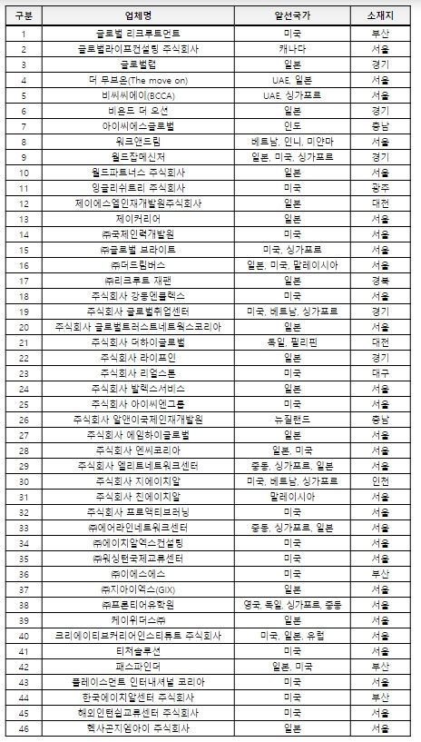 올해 민간 알선기관은 지속적으로 청년의 관심도가 높은 미국(47.8%), 일본(26.1%)을 포함하여 영국, 말레이시아, 싱가포르 등이 선정됐다. 직종별로는 IT, 교사, 의료종사자 등 전문 직종이 우선 고려됐다.