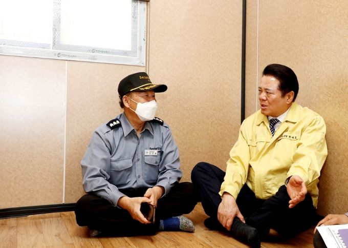 23일 안양시에 따르면, 최 시장은 전날 오후 4시 관악부영아파트의 노동자 휴게시설을 방문해 건축물을 점검하고 노동자들을 만났다.