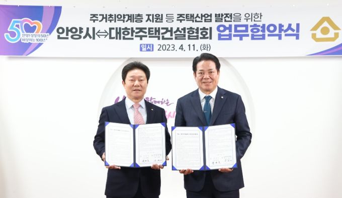 [경기탑뉴스=박봉석 기자] 안양시가 취약계층의 주거환경을 개선하고 지역건설산업을 활성화하기 위해 대한주택건설협회 경기도회와 업무협약(MOU)을 체결했다.