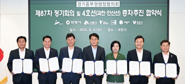 안산시는 지난 9일 디테크타워 과천빌딩에서 열린 경기중부권협의회 제87차 정기회의에서 과천, 안양, 시흥, 광명, 군포, 의왕 등 경기 중부권 6개 시와 지하철 4호선(과천·안산선) 증차 추진을 위한 업무협약을 체결했다고 10일 밝혔다.