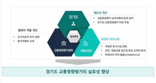 경기연구원은 교통영향평가의 현실성을 높이기 위해 ▲조사 대상 유사 시설의 기준을 명확하게 하는 등 교통영향평가 지침 개정 ▲평가대행자의 협의체인 교통영향평가협회에서 스스로 조사자료에 대한 관리‧감독 강화 ▲경기도 교통영향평가 심의위원회에 수요예측 분과 설치‧운영 등을 제안했다.