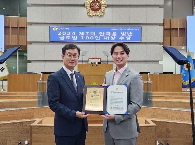 [경기탑뉴스=박봉석 기자] 경기도의회 문화체육관광위원회 황대호 위원장(더불어민주당, 수원3)이 ‘2024 제7회 한국을 빛낸 글로벌 100인 대상’ 대한민국 지자체의정부문 대상을 수상했다.