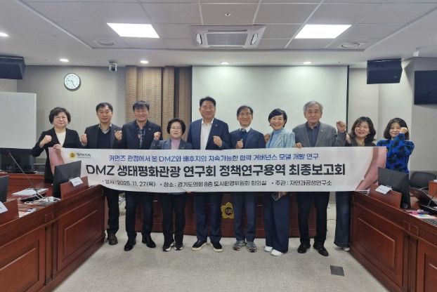 [경기탑뉴스=박봉석 기자] 경기도의회 의원연구단체인 DMZ생태평화관광 연구회(회장 오준환 의원)는 지난 27일 경기도의회 도시환경위원회 회의실에서 '커먼즈 관점에서 본 DMZ와 배후지의 지속가능한 협력 거버넌스 모델 개발 연구' 용역 최종보고회를 개최했다.