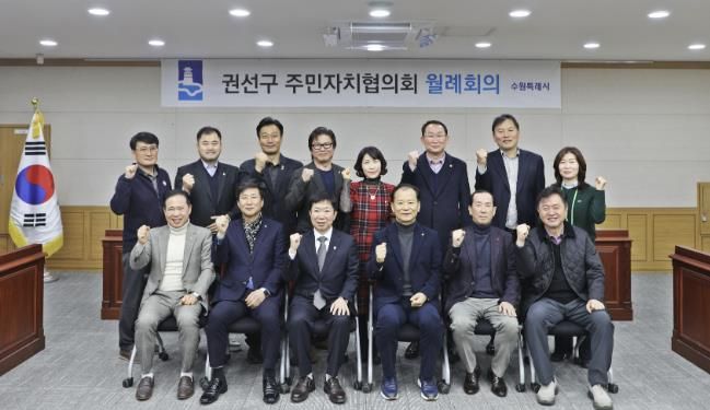 이번 회의는 신년 첫 월례회의로, 권선구청장을 비롯해 주민자치회장 등 11 명이 참석해 새해 인사를 나누고, ▲2026년 주민자치활성화 사업 추진 ▲동별 주민자치센터 강사수당 현황 공유하며 주민자치회 운영에 대한 의견을 나누고, 시·구정 홍보사항을 공유하는 등 구정 발전을 위해 논의하는 시간을 가졌다.