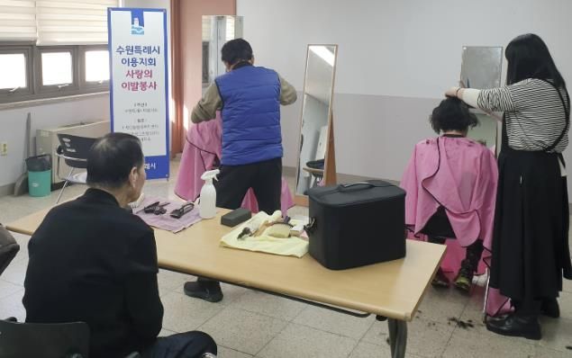 [경기탑뉴스=박봉석 기자] 수원시 영통구 매탄3동에 위치한 미용실 ‘시저스맨’이 지역 내 저소득 노인과 장애인을 위한 정기적인 이발 봉사를 이어가고 있다.