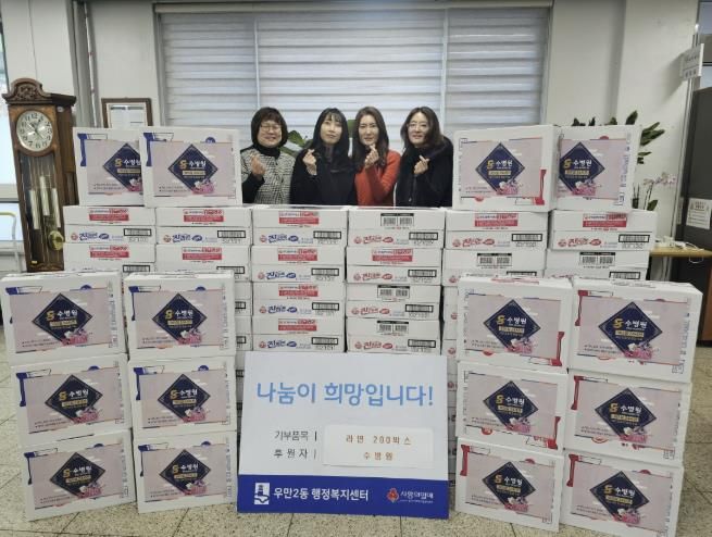 한편, 이날 기부된 라면 200박스는 우만2동 행정복지센터를 통해 홀몸 어르신, 저소득 가구 등 도움이 필요한 이웃들에게 전달될 예정이다.