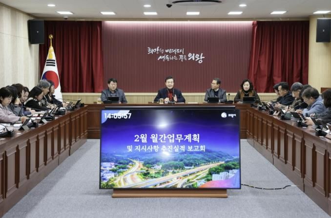 [경기탑뉴스=박봉석 기자] 김성제 의왕시장이 2월 2일 건강한 모습으로 시정에 공식 복귀한 데 이어, 3일 시청 중회의실에서 확대 간부회의를 직접 주재하며 현안 챙기기에 나섰다.