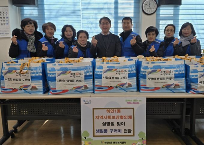 한편, 하안1동 지역사회보장협의체는 명절 물품 지원 외에도 독거어르신 밑반찬 지원, 스마트 돌봄 플러그 사업, 저소득 청소년 도서상품권 지원, 사랑의 빵 배달 등 다양한 특화사업을 추진하며 지역복지 증진에 앞장서고 있다.