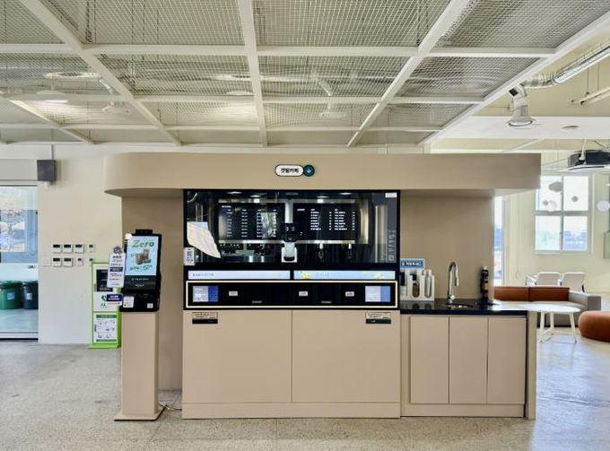 경기창작캠퍼스 선감생활동 1층에 위치한 ‘갯벌카페’는 키오스크 및 모바일 기기로 주문할 수 있으며, 주문부터 결제, 음료 제조, 픽업까지 전 과정이 자동화된 무인 로봇카페로 대기 시간을 줄이고 이용 편의성을 높인 것이 특징이다. 원격 관리와 정기 점검을 통해 위생적이고 안정적인 운영 환경을 유지하며, 방문객에게 언제나 균일한 품질의 음료를 제공한다.