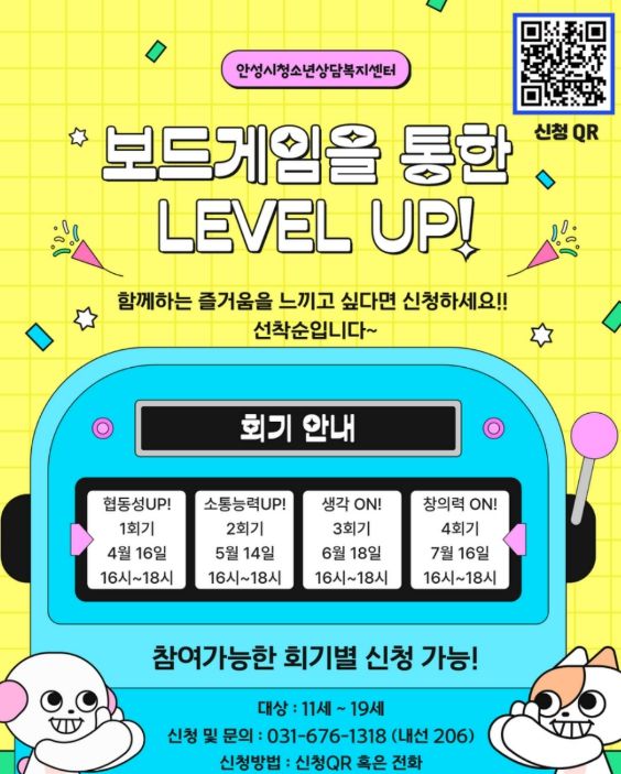 상반기 일정은 4월부터 7월까지 매월 셋째 주 목요일(오후 4시~6시)에 진행된다. 장소는 안성맞춤공감센터 4층에 위치한 안성시 청소년상담복지센터 집단실이다.