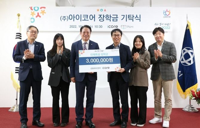 인재육성재단 최대호 이사장은 “지역의 인재 육성을 위한 값진 기부를 실천한 ㈜아이코어에 감사드리며, ㈜아이코어가 안양을 대표하는 글로벌 기업으로 성장하기를 응원하겠다”고 말했다.