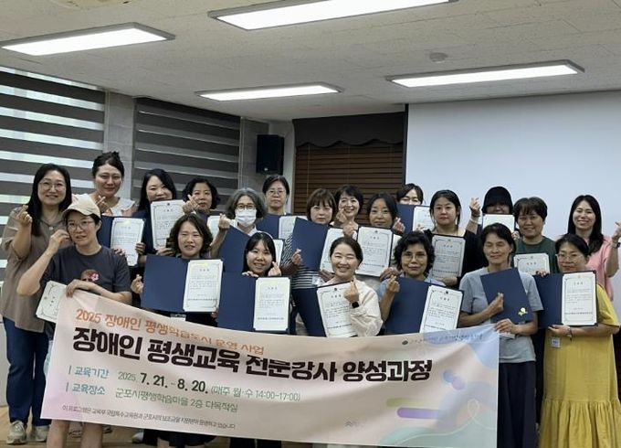 [경기탑뉴스=박봉석 기자] 군포문화재단 군포시평생학습마을은 8월 20일, 지역 내 장애인 평생교육의 전문성을 높이기 위한 ‘장애인 평생교육 전문강사 양성과정’을 성황리에 마무리했다.