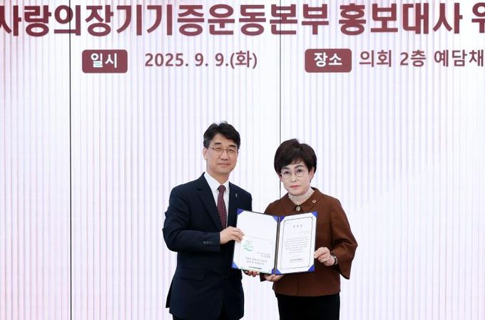 [경기탑뉴스=박봉석 기자] 경기도의회 교육기획위원회 소속 김선희 도의원(국민의힘, 용인7)이 9월 9일 ‘장기기증의 날’을 맞아 재단법인 사랑의 장기기증운동본부 홍보대사로 위촉됐다.