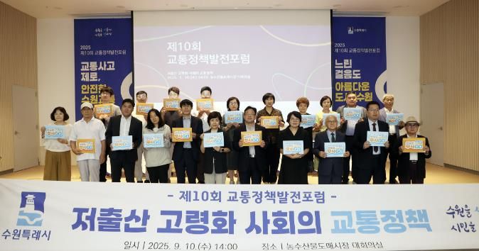 [경기탑뉴스=박봉석 기자] 수원시는 10일 농수산물도매시장 대회의실에서 ‘제10회 교통정책발전포럼’을 열고, 고령화 사회에 대응한 교통정책 방향을 논의했다.