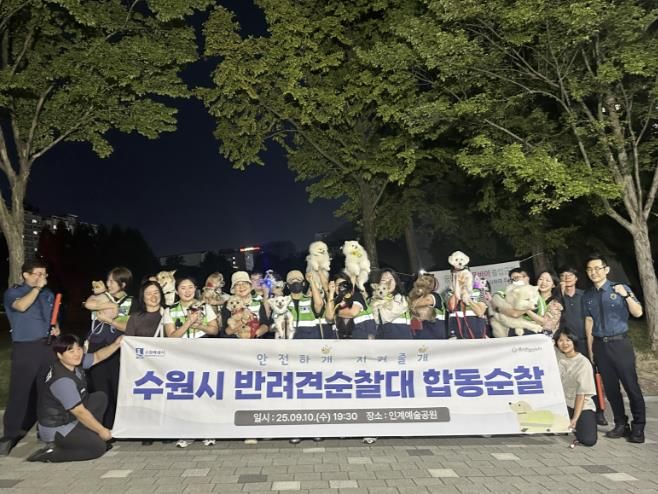 [경기탑뉴스=박봉석 기자] 수원시는 10~11일 4개 구 관할 경찰서와 함께 ‘2025년 수원시 반려견 순찰대 구별 야간 합동순찰’을 했다.