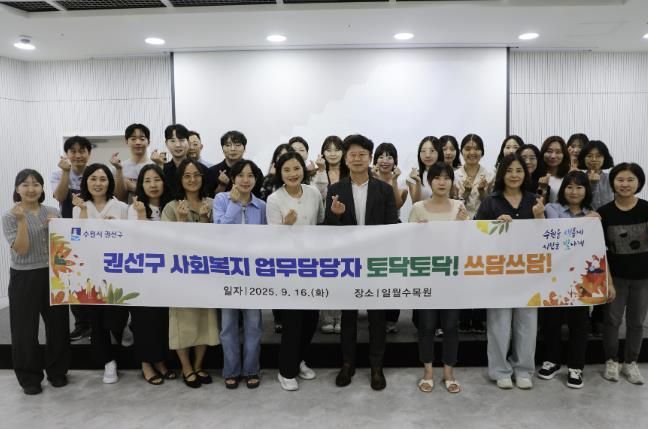 [경기탑뉴스=박봉석 기자] 수원시 권선구는 지난 16일, 일월수목원에서 권선구 사회복지 담당 직원 30명이 참여한 가운데 2025년 하반기 권선이음을 실시했다.