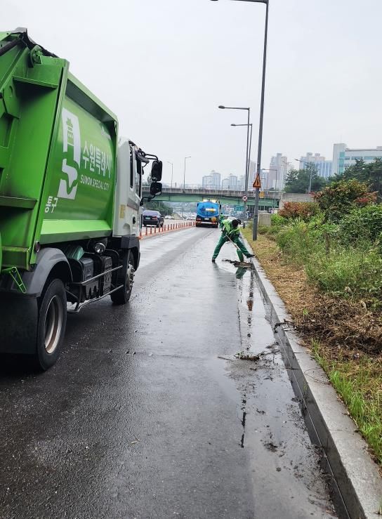 [경기탑뉴스=박봉석 기자] 수원특례시 영통구는 '대한민국 새단장' 캠페인의 일환으로 민족 최대의 명절 추석을 맞아 고향을 찾는 귀성객들에게 쾌적하고 안전한 도로 환경을 제공하고자 영동고속도로 동수원나들목 진출입로 집중 환경정비를 실시했다.