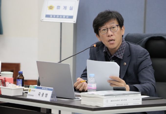 [경기탑뉴스=박봉석 기자] 경기도의회 안전행정위원회 국중범 의원(더불어민주당, 성남4)은 11일 동두천소방서에서 실시된 2025년 경기도의회 행정사무감사에서 학교 내 전기차 충전소 설치에 대한 안전관리 대책 마련을 강력히 촉구했다.