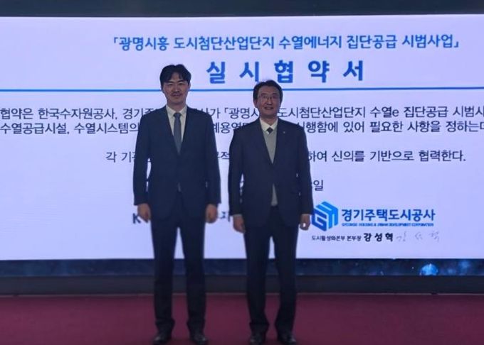 [경기탑뉴스=박봉석 기자] 경기주택도시공사(GH)는 3일 GH 수원 본사 9층 역량개발센터에서 한국수자원공사(K-water)와 함께 ‘광명시흥 도시첨단산업단지 수열에너지 집단공급 시범사업’ 추진을 위한 실시협약을 체결했다고 밝혔다. 이 자리에는 양 기관 관계자 약 30명이 참석했다.