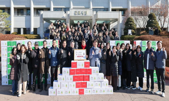 [경기탑뉴스=박봉석 기자] 군포시는 지난 18일 안양시 동안구에 위치한 새중앙교회로 부터 크리스마스를 맞아 일상생활에서 꼭 필요한 기본 식료품으로 구성한 꾸러미‘사랑의 천사박스’1,004상자를 기탁받았다고 밝혔다.