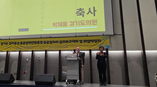 [경기탑뉴스=박봉석 기자] 경기도의회 보건복지위원회 박재용 의원(더불어민주당, 비례)은 16일, 수원컨벤션센터에서 열린 ‘2025년 경기도 권리중심 중증장애인맞춤형 공공일자리 성과보고대회 및 취업박람회’에 참석해 축사를 전하고, 중증장애인의 노동권 보장과 권리중심 공공일자리 정책의 지속적인 발전 필요성을 강조했다.