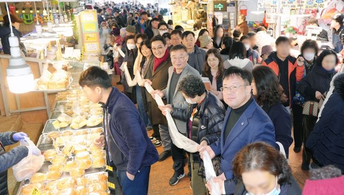 [경기탑뉴스=박봉석 기자] 수원 못골종합시장이 새해를 맞아 16일 전통시장 상인과 시민이 함께하는 ‘가래떡 나눔 행사’를 열었다.