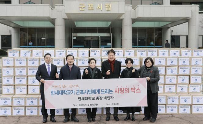 [경기탑뉴스=박봉석 기자] 유난히 추운 겨울이지만, 군포시에는 이웃을 향한 정성이 모여 훈훈한 설 명절 분위기가 피어나고 있다. 한세대학교는 10일, 지역 내 취약계층의 넉넉한 명절을 위해 ‘사랑의 희망박스’ 350세트를 군포시에 전달하며 상생의 가치를 실천했다.