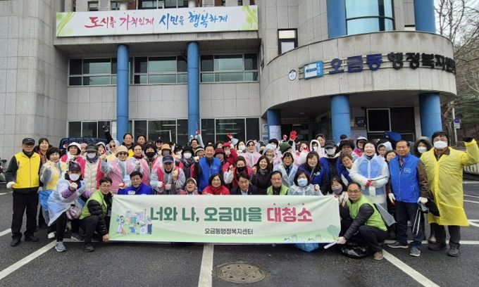 이번 행사는 오금동 주민자치회, 통장협의회를 비롯한 오금동 직능단체 회원들과 동 직원 등 100여명이 참여해 겨우내 쌓인 먼지와 쓰레기를 정비하여 마을 환경 개선에 힘을 보탰다. 참가자들은 공원과 인도 일대를 중심으로 쓰레기 줍기 활동을 펼치는 한편, 흥진고등학교 앞 어린이보호구역 내 펜스와 벤치 등 공공시설물을 깨끗이 닦는 작업도 함께 진행했다.