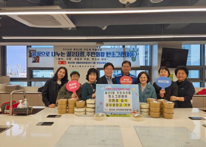 [경기탑뉴스=박봉석 기자] 광명시 철산2동 주민자치회는 지난 1일 지역 주민들과 함께 저탄소·친환경 식재료로 만든 음식을 ‘광명마을냉장고(연서로 10)’에 기부하며 탄소중립 실천에 앞장섰다.