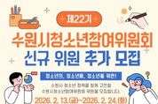 [경기탑뉴스=박봉석 기자] 수원시청소년청년재단(이사장 최종진)은 수원시 청소년의 정책 참여 확대와 권익 증진을 위해 '제22기 수원시청소년참여위원회' 위원을 추가 모집한다고 밝혔다. 수원시청소년참여위원회는 청소년기본법5조의2(청소년자치권의 확대)에 따라 청소년이 직접 정책 제안과 의견 개진에 참여하며 청소년 정책의 실효성을 높이기 위해 운영되는 공식 참여기구이다. 이번 추가 모집은 수원시에 거주하는 9세부터 24세까지의 청소년을 대상으로 하며 총 20명 내외를 선발할 예정이다. 활동 기간은 2026년 3월부터 12월까지이며 주요 활동 내용은 △수원시 청소년 정책 제안‧발굴 및 자문 △정책 관련 전문교육 참여 △청소년축제 기획 및 운영 △경기도 청소년참여위원회 및 관내 참여기구 교류 활동 등이다. 참여위원회 위원에게는 수원시장 명의의 위촉장이 수여되며 활동에 따라 봉사시간도 부여된다. 모집 기간은 2026년 2월 13일부터 2월 24일까지이며 신청은 재단 홈페이지 또는 수원시청소년청년재단 경영지원실로 문의하면 된다.