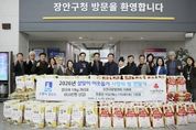 [경기탑뉴스=박봉석 기자] 수원시 장안구에 위치한 예스식자재마트에서 지난 5일, 설 명절을 맞아 장안구에 백미 100포를 기부했다. 장안구는 기부받은 백미를 각 동에 전달하여 복지사각지대에 놓인 지역 저소득 가구에 지원하는 등 취약계층 지원에 활용할 예정이다. 유용현 대표는 "명절을 맞아 어려운 이웃들에게 조금이나마 도움이 되길 바란다”며 “앞으로도 지역사회에 보탬이 되도록 나눔을 이어가겠다"고 말했다. 이일희 장안구청장은 "모두가 힘든 시기임에도 이렇게 기부해주셔서 정말 감사드린다"며 "이웃돕기에 솔선수범하는 마음을 헤아려 어려운 이웃들에게 따뜻한 마음을 정성껏 전달하겠다"고 말했다.