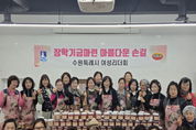 [경기탑뉴스=박봉석 기자] 수원시여성리더회가 5일 행궁동 어울림센터 공용주방에서 ‘장학기금 마련 젓갈 포장 행사’를 열었다. 김미애 수원시여성리더회 총회장과 이지영 수원시여성단체협의회 명예회장 등 회원 20여 명이 참여해 명란젓과 낙지젓 등 4종의 젓갈을 소포장해 판매했다. 수익금은 장학금으로 기부할 예정이다. 김미애 총회장은 “장학기금 마련에 동참해 주신 모든 분께 감사드린다”며 “이번 행사가 학생들의 미래를 응원하는, 작은 힘이 되길 바란다”고 말했다. ‘수원시 여성지도자대학’ 수료생으로 구성된 수원시여성리더회는 2004년 출범 이후 한부모가정 지원, 저소득 중·고등학생 장학금 후원, 복지관 중식 봉사, 소외계층 김장 봉사, 헌혈 캠페인 등 지역사회를 위한 나눔·봉사 활동을 꾸준히 하고 있다.