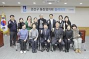[경기탑뉴스=박봉석 기자] 수원시 권선구는 지난 4일, 권선구청 상황실에서 각 동 통장협의회 회장들이 참석한 가운데 2월 정기 월례회의를 개최했다. 이날 회의에서는 2026년 수원시 시민안전보험, 취업준비청년 면접정장 대여사업 '청나래'와 같은 수원시의 주요 사업 안내가 이루어졌으며, 설 명절을 맞아 통장의 역할을 되새기는 시간을 가졌다. 양배근 권선구 통장협의회장은 “설 명절을 맞아 통장으로서 지역의 취약계층 등을 위해 노력하고자 한다”며, “소외된 주민들에게 먼저 손을 내밀어 지역의 발전과 화합을 위해 통장협의회가 앞장서겠다”라고 말했다. 고호 권선구청장은 “명절을 앞두고 통장님들께서 마을 구석구석을 세심하게 살펴주시길 부탁드린다”며, “앞으로도 민관이 긴밀히 소통하고 협력하여 더욱 살기 좋은 권선구를 만들어 나가는 데 최선을 다하겠다”라고 말했다.