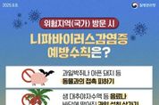 [경기탑뉴스=박봉석 기자] 안산시는 최근 인도(서벵골주)에서 발생한 니파바이러스 감염증과 관련해 해외여행을 준비하는 시민들에게 감염병 예방 수칙 준수를 당부하고 나섰다고 4일 밝혔다. 지난달 30일 질병관리청 발표에 따르면, 인도 서벵골주에서 니파바이러스감염증 환자 2명이 발생했으며, 이들과 접촉한 196명은 검사 결과 모두 음성으로 확인됐다. 현재까지 추가적인 감염 사례는 보고되지 않았다. 니파바이러스 감염증은 인수공통감염병으로 주된 감염경로는 ▲감염된 동물(과일박쥐, 돼지 등)과 접촉 ▲오염된 식품(생대추야자수액 등)을 섭취 ▲환자의 체액과의 밀접 접촉 등이다. 아울러, 사람 간 전파도 가능한 것으로 알려져 있다. 특히 니파바이러스는 상온에서도 비교적 오랜 기간 생존할 수 있어 과일이나 과일즙에서는 최대 3일, 22도 환경의 대추야자 수액에서는 최소 7일간 감염력이 유지되는 것으로 보고된다. 감염 초기에는 발열, 두통, 근육통 등이 나타나며, 현기증, 졸음, 의식 저하 등 신경계 증상으로 진행될 수 있다. 중증으로 악화 시, 치명률이 40~75%에 이르는 고위험 감염병으로, 현재까지 백신이나 치