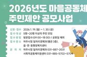 [경기탑뉴스=한진선 기자] 여주시가 2026년 마을공동체 주민제안 공모사업 관련하여 사업설명회를 개최한다. 이번 설명회는 공모사업에 대한 주민들의 이해를 높이고, 공모사업 참여를 희망하는 공동체가 보다 원활하게 공모를 준비할 수 있도록 마련했다. 사업설명회는 2026년 1월 19일 14시 여주시 사회적공동체지원센터(여주시 세종로14번길 18, 중앙프라자 5층) 소회의실에서 진행된다. 2026년 여주시 마을공동체 주민제안 공모사업 참여를 희망하는 신청예정자 참석 가능하며, 주요 내용으로는 ▲ 경기도 마을공동체 이해교육(동영상 시청) ▲ 2025년 여주시 마을공동체사업 성과보고 ▲ 2026년 여주시 마을공동체 주민제안공모사업 설명 ▲ 질의응답 등이 포함된다.