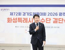 [경기탑뉴스=박봉석 기자] 화성특례시의회는 26일 화성종합경기타운 3층 라운지홀에서 열린 제72회 경기도체육대회 화성시 선수단 결단식에 참석해 선수단을 격려하고 4연패 달성을 위한 결의를 다졌다. 이날 행사에는 배정수 의장을 비롯해 김종복 문화복지위원장, 송선영·이용운 의원, 화성시체육회 임원과 종목단체 관계자, 선수단 등 약 150여 명이 참석했다. 이날 결단식은 경기도체육대회 출전을 앞둔 선수단의 사기를 높이고 각오를 다지는 자리로 마련됐다. 화성특례시 선수단은 오는 4월 16일부터 18일까지 광주시 일원에서 열리는 제72회 경기도체육대회에 출전한다. 육상, 수영, 축구 등 27개 종목에 참가해 종합우승 4연패에 도전한다. 배정수 의장은 “묵묵히 쌓아온 훈련의 시간과 노력을 믿고 끝까지 당당하게 경기에 임해주시기 바란다”며 “선수 여러분의 땀과 투혼이 화성특례시의 자부심”이라고 말했다. 이어 “화성특례시의회도 선수들이 오직 경기에 집중할 수 있도록 체육 환경 조성과 지원에 최선을 다하겠다”며 “4연패 달성을 진심으로 기원한다”고 덧붙였다. 화성특례시의회는 선수들이 충분한