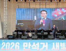 [경기탑뉴스=박봉석 기자] 수원특례시의회는 4일 만석공원 일원에서 열린 '2026 만석거 새빛축제'에 참석해 시민들과 함께 축제의 시작을 알리고, 수원을 대표하는 야간 관광 콘텐츠의 가능성을 확인했다. 이번 축제는 세계문화유산인 만석거의 역사적 가치를 널리 알리고, 벚꽃 시즌과 연계한 야간관광 활성화를 위해 마련됐다. 특히 ‘2026 수원 방문의 해’를 맞아 추진되는 대표 프로그램 중 하나로, 관광객 유입과 지역 상권 활성화에도 긍정적인 역할이 기대된다. 이날 개막식에서는 드론 500여 대가 참여한 라이트쇼와 화려한 불꽃놀이가 만석거 밤하늘을 수놓으며 장관을 연출했고, 음악분수와 버스킹 공연 등 다양한 문화 콘텐츠가 어우러져 현장을 찾은 시민들에게 풍성한 즐길 거리를 제공했다. 수원특례시의회는 행사에 참석해 시민들과 소통하며 축제 운영 상황을 살펴보고, 지역 관광자원과 연계한 문화콘텐츠 확대 방안에 대해 공감대를 나눴다. 행사에는 이재식 의장을 비롯한 시의원들이 함께 참석해 시민들과 축제의 시작을 함께했다. 이재식 의장은 “만석거는 시민의 삶을 풍요롭게 하는 문화공간”이라며“이번 축제가 수원을 대표